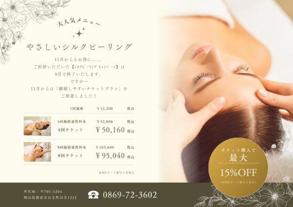大人気メニュー! やさしいシルクピーリングにチケットプラン新登場!